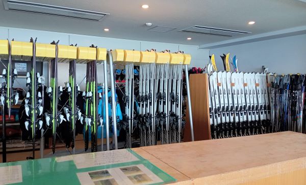 スキー用具のレンタルも充実しています。