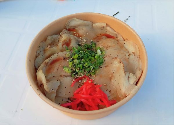 鹿角パークホテルの桃豚丼です。