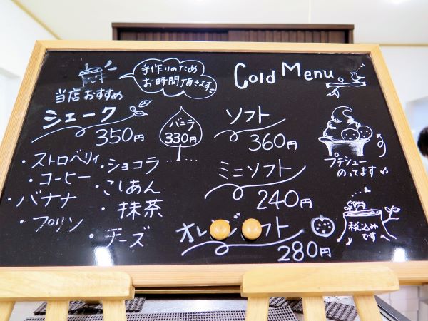 ドリンクメニューも充実しており、コーヒーや紅茶のほか、子ども向けのジュースも揃っています。